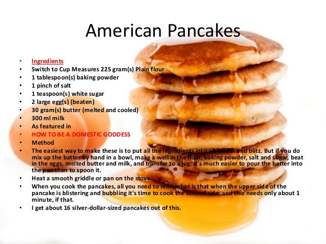 pancakes american recipe ingredients measures slideshare